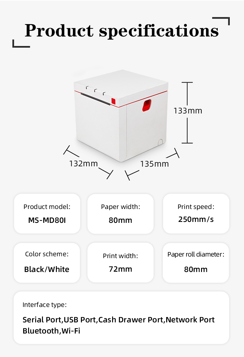 The MS-CH80I is more than just a fast 80mm thermal receipt printer; it’s an intelligent business partner. It comes equipped with an adjustable “paper low” sensor and reflective photoelectric detection to prevent out-of-paper incidents, ensuring you are always prepared for the next transaction. For specialized labeling applications, an optional black mark detection feature is available, further enhancing the versatility of this advanced 80 mm receipt printer for various operational needs.
