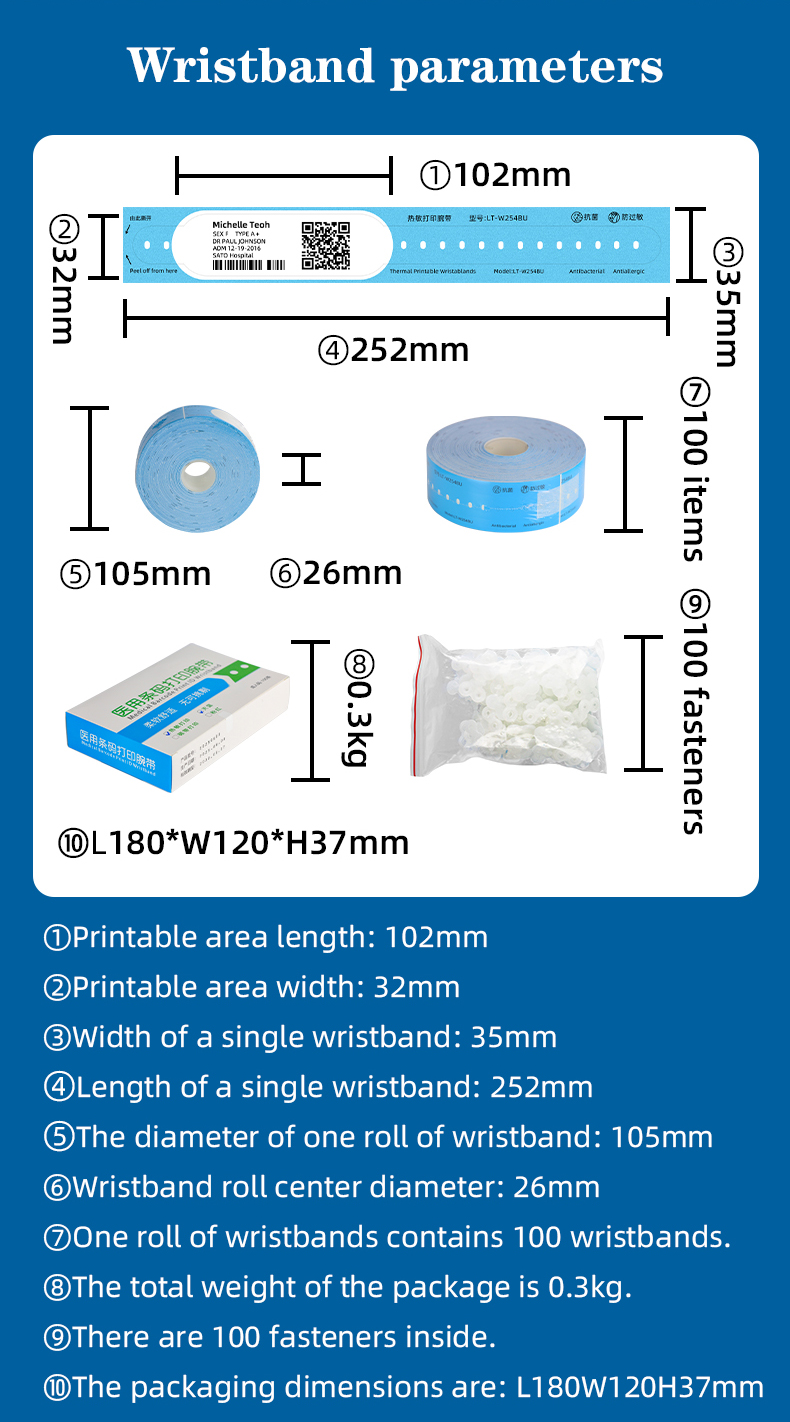 Crafted for safety and comfort, our hospital patient wristband roll (35 mm x 100 pcs) is made from certified antibacterial and antiallergic, eco-friendly material, minimizing skin irritation and supporting infection control protocols.