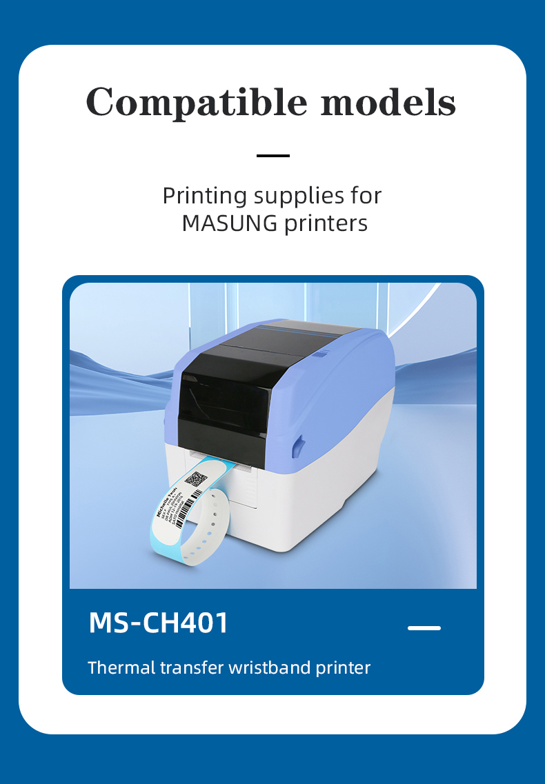 Designed for seamless compatibility with the MS-CH401 wristband printer, it ensures reliable, high-quality printing for clear patient identification. Each roll is fully customizable before mass production to meet your hospital’s specific use and needs, from barcodes to patient details, providing a durable, hygienic, and efficient solution for daily patient management.