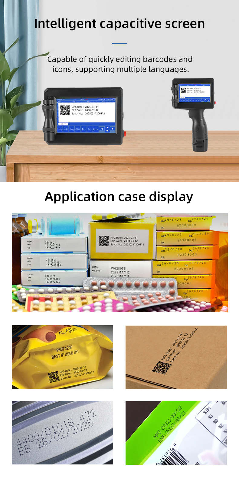 It provides portable, on-demand printing for production dates, expiry dates, serial numbers, barcodes, logos, and other crucial information directly onto diverse surfaces like boxes, bottles, pipes, and fabric.