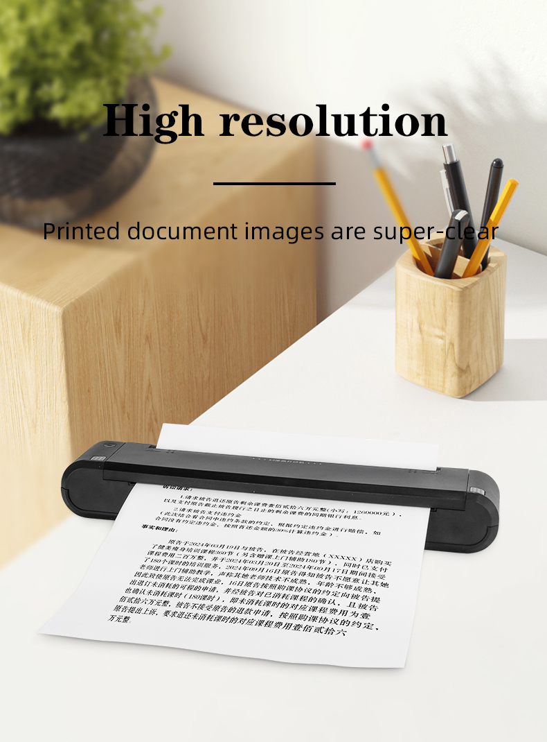 This wireless A4 printer delivers exceptional performance through its high-end thermal print head, achieving a crisp print density of 11.8 dots/mm (300 DPI). This ensures that every document is produced with sharp, professional-grade clarity. The direct thermal printing method simplifies operation by eliminating the need for ink or toner cartridges, providing a clean and low-maintenance user experience that defines modern portable wireless A4 printer technology.