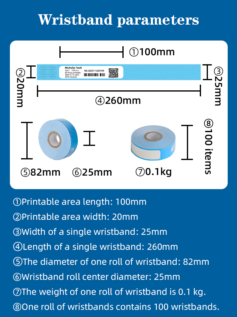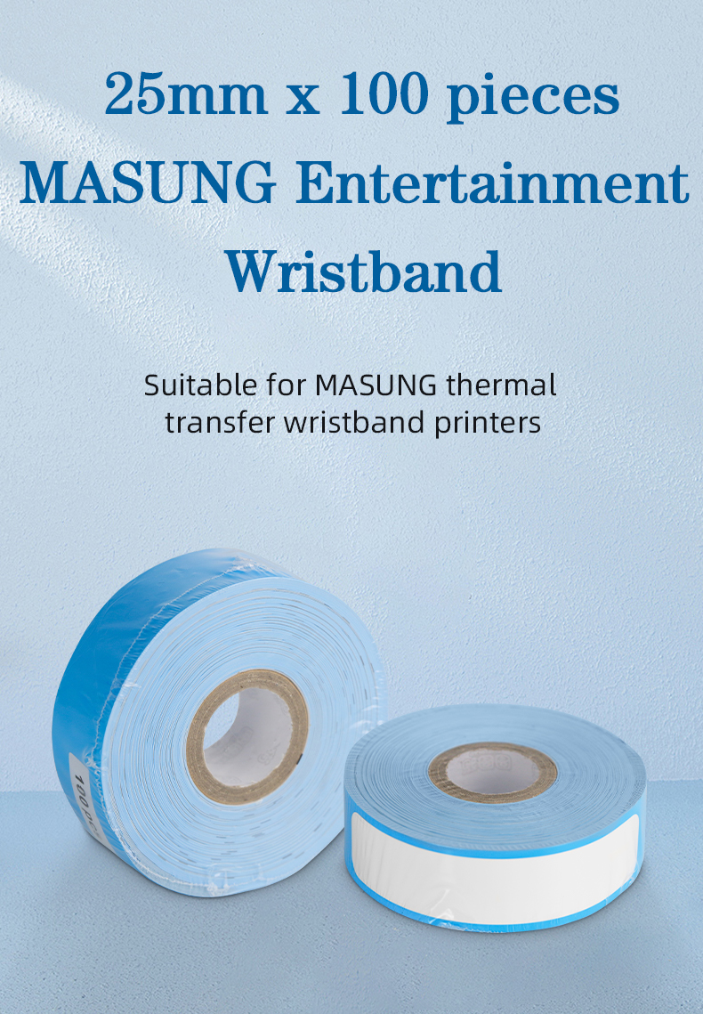 Durable & Custom Paper Wristbands for Events | 25 mm x 100 pcs/roll. Get eco-friendly, antibacterial paper wristbands for events that come in 25 mm x 100 pcs per roll. They are antiallergic, fully customizable, and MS-CH401 wristband printer compatible. Perfect for secure, comfortable event access control.